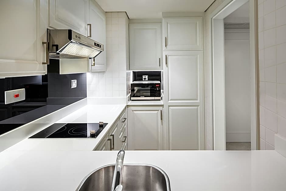 If you are traveling as a couple or for business, the Classic Suite Serviced Apartment offers you a fully-furnished separate bedroom and living area. At 55 square yards, you have space to relax or work, then retire to your bedroom for a good night’s rest.
