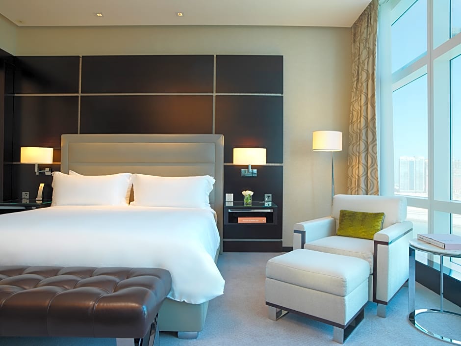 Featuring spacious and well-appointed interiors with captivating views of the city, experience luxury and comfort in deluxe rooms. The rooms boast artful decor with subtle tones of dark wood, elegantly accented by contrasting fabrics.