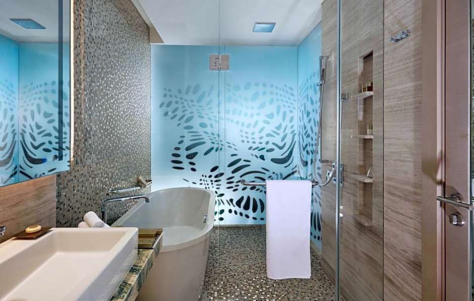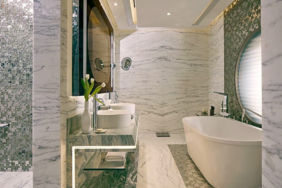 This suite's standout feature is the hot tub. This spacious suite is consisted of of 1 living room, 1 separate bedroom and 2 bathrooms with a walk-in shower and bathrobes. The air-conditioned suite offers a flat-screen TV, soundproof walls, a mini-bar, a tea and coffee maker as well as sea views. The unit offers 1 bed.