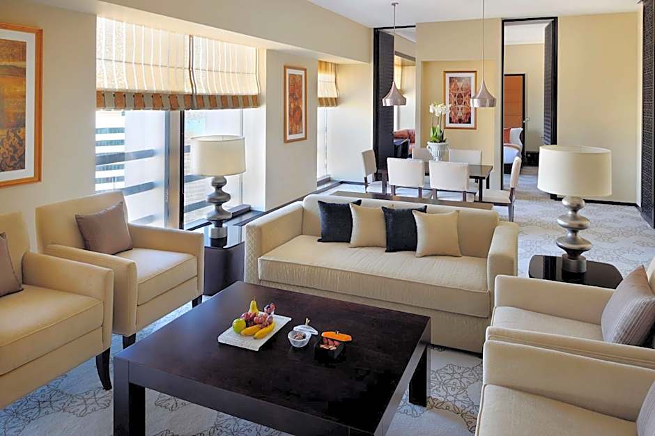 The hotel offers multiple on-site dining options, including The Foundry with a family-friendly and modern ambiance, serving steakhouse and international cuisine. Additionally, Kahraman provides a mix of traditional and modern ambiances with Middle Eastern, seafood, sushi, local, and grill BBQ cuisines. Guests can also enjoy a modern ambiance at Blu Sky Lounge & Grill, which serves American, British, and European cuisine.