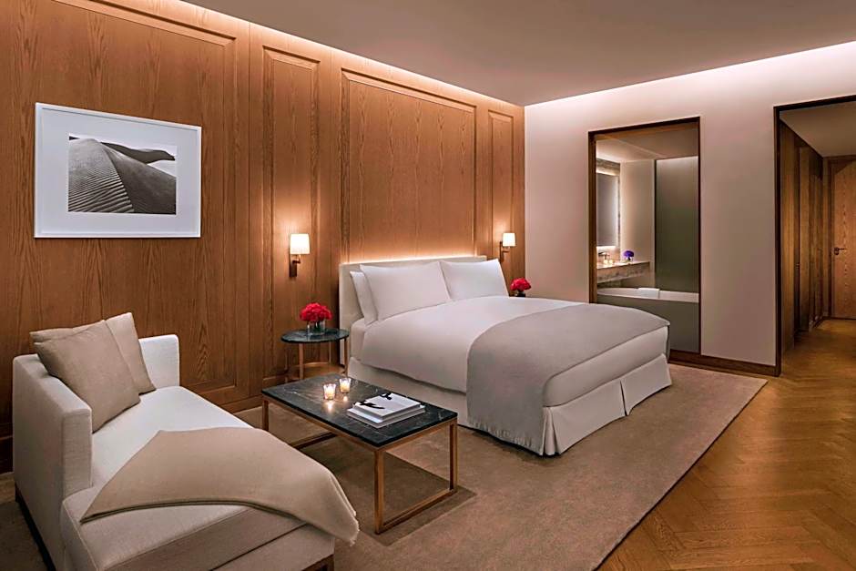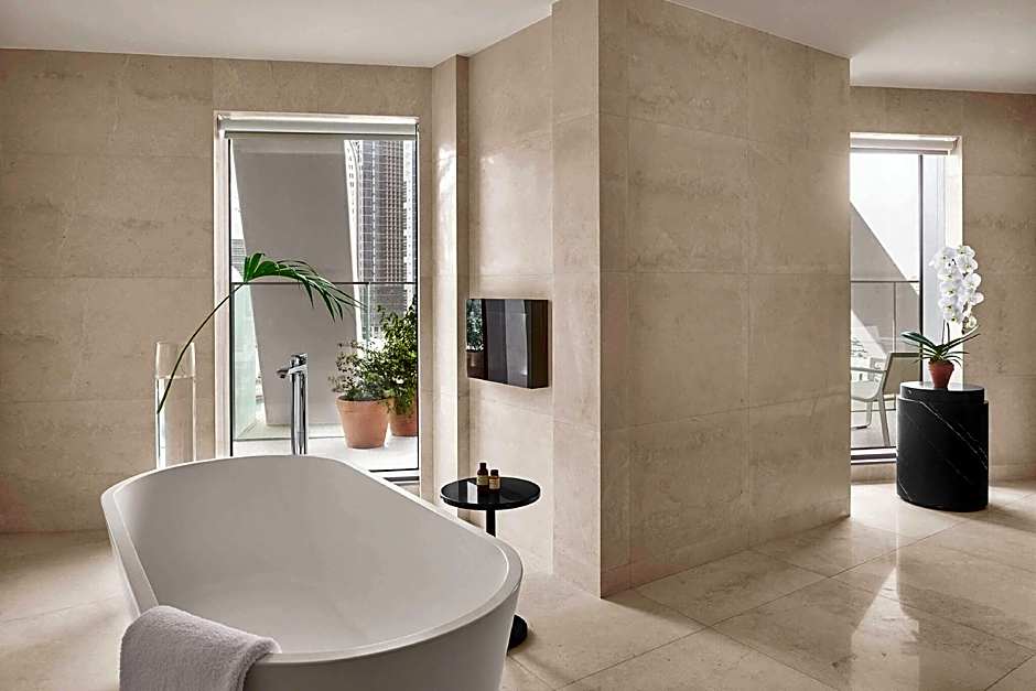 This air-conditioned suite features a flats-screen TV, fully stocked mini bar with complimentary water, Nespresso coffee machine. The bathroom is equipped with bathtub and enclosed shower with Le Labo toiletries.