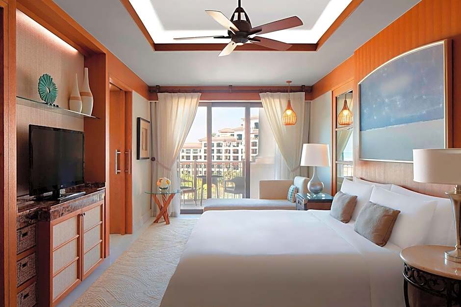 St Regis, Superior Room, 1 King Bed, Balcony, Partial Sea View is 581 square feet and includes a double bed 131-150 width plus balcony, extra beds on demand, desk, cable tv, hairdryer, tea and coffee making facilities , ironing set, safe, and slippers and has a Disability-friendly bathroom.