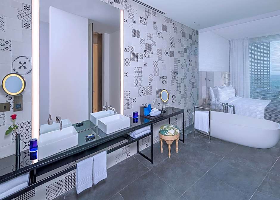 Guests will have a special experience as the double room features a private pool. Providing free toiletries and bathrobes, this double room includes a private bathroom with a shower, a bidet and a hairdryer. The spacious air-conditioned double room provides a flat-screen TV with cable channels, soundproof walls, a mini-bar, a tea and coffee maker as well as sea views. The unit offers 1 bed.