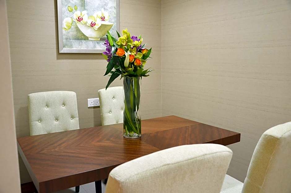 These two-bedroom suites combine sleek modern decor with everyday functionality, highlighted by light and airy finishes and large landscape windows. Guests will enjoy a spacious work desk and open living room, a master bedroom with private bathroom, and a secondary bedroom with a bathroom adjacent to the bedroom. These rooms are available from the 6th floor up to the 16th floor. Free WiFi is included.