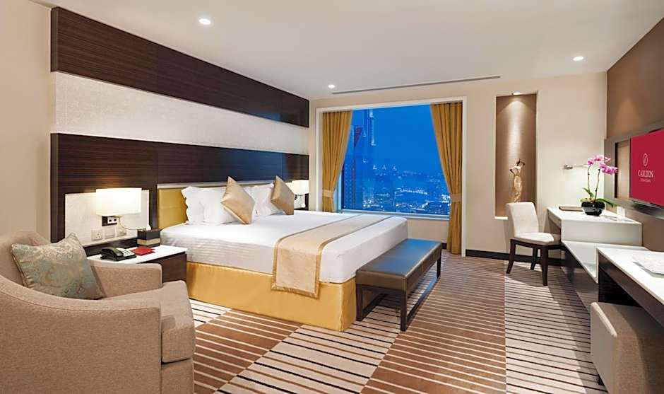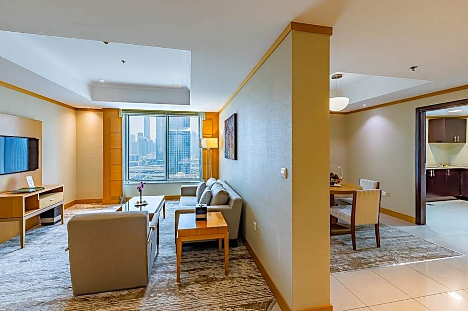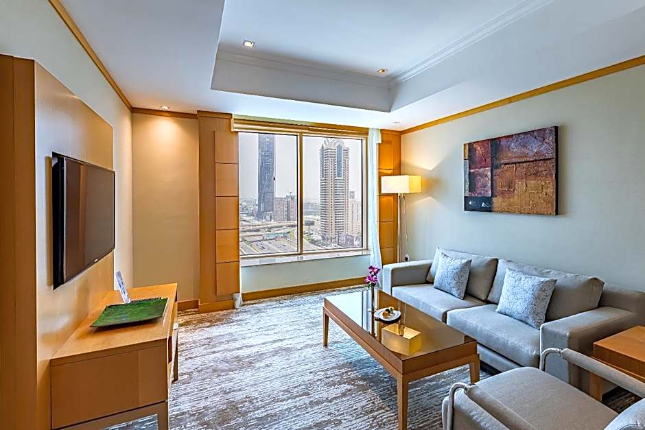 Available from the 5th floor up to the 26th floor, this room offers the choice of king or twin beds, work desk and free WiFi. Guests may stretch out and relax in the Chaise Longue. Higher floors offer view of Dubai.