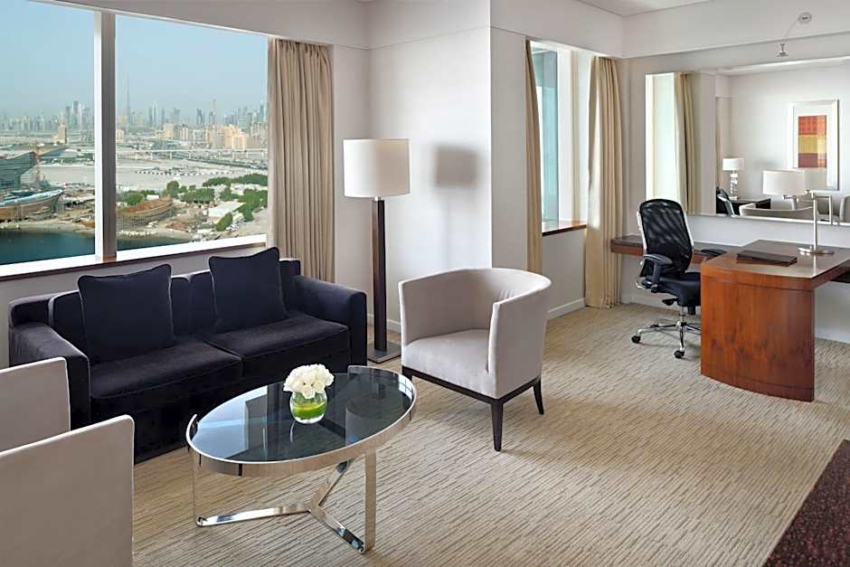 Overlooking the historic Dubai Creek, the 45 sqm room features contemporary design.