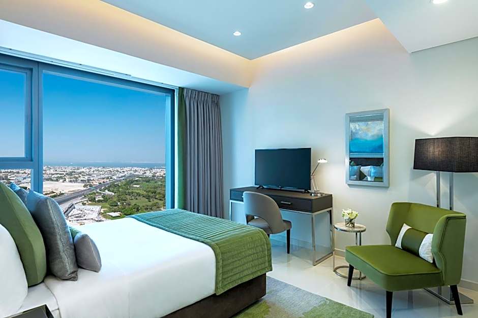 Welkom in het fantastische DAMAC Maison Aykon City Dubai, waar avontuur en luxe samenkomen! Gelegen op slechts 8mi van het bruisende stadscentrum, is dit 4-sterrenhotel het perfecte vertrekpunt voor je Dubai-avontuur. Stel je voor dat je wakker wordt met een adembenemend uitzicht op het meer vanaf je balkon, geniet van een heerlijk ontbijt om je dag goed te beginnen en je omringd bevindt door tal van voorzieningen die plezier en ontspanning garanderen.