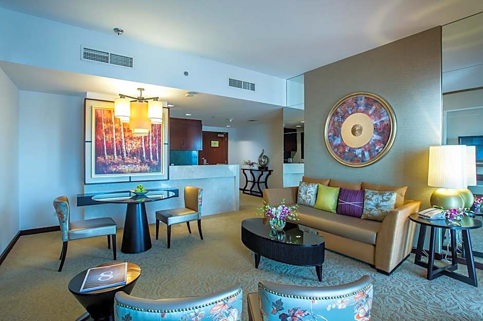 Bienvenue dans l'exquis Dusit Thani Dubai, où le luxe rencontre le confort au cœur de la ville animée ! Situé au 133 Sheikh Zayed Road, ce somptueux hôtel 5 étoiles se trouve à seulement 9,2mi du centre-ville animé, ce qui en fait une base idéale pour explorer tout ce que Dubaï a à offrir. Avec des tarifs à partir de $79, vous pouvez vous offrir un séjour plein de sophistication sans vous ruiner !