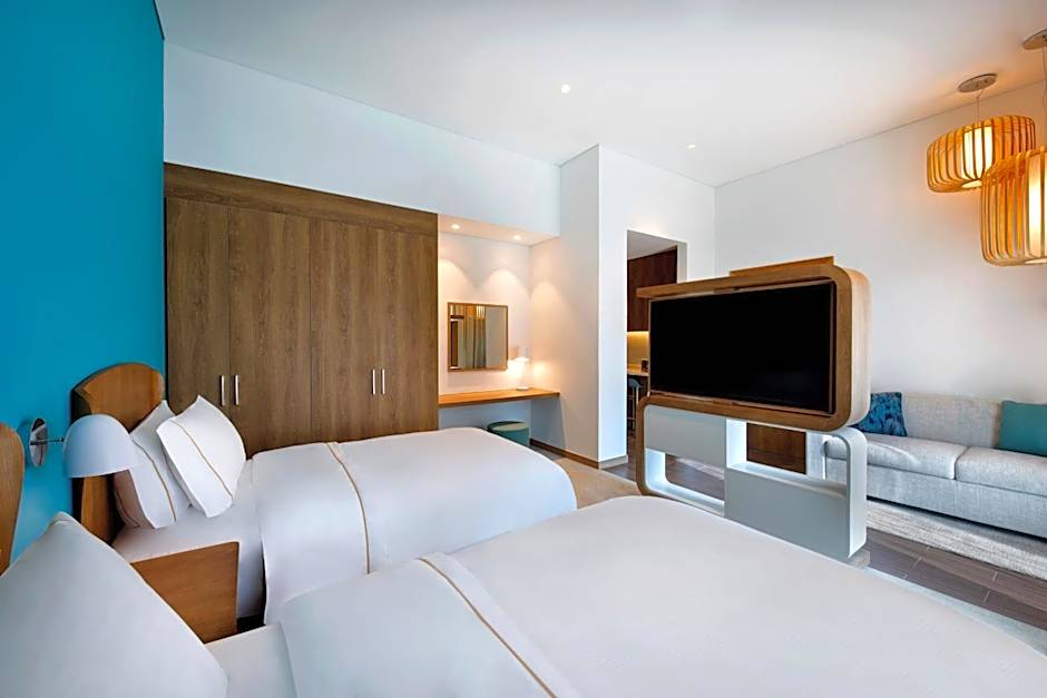 In the evening, why not take advantage of the hotel’s proximity to local attractions and indulge in a little wanderlust? With the convenient shuttle service at your disposal, you can discover the wonders of Dubai, from the breathtaking twilight views of the Burj Khalifa to the enchanting souks filled with treasures. Once you return to the comforts of the Element, relax in your room with stunning views or gather with friends and family in one of the expansive suites, perfect for making lasting memories.