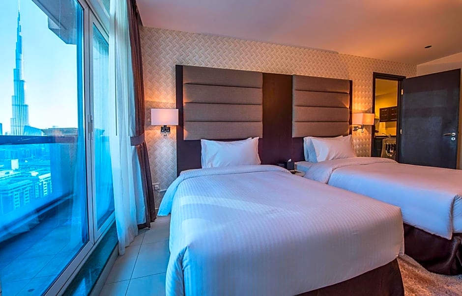 Rooms come with thoughtful touches such as balconies or patios, and select accommodations showcase a landmark view or even a Burj Khalifa panorama. The property offers a broad mix of living spaces, from cozy studios to larger suites, providing flexible options for solo travelers, couples, and groups alike.