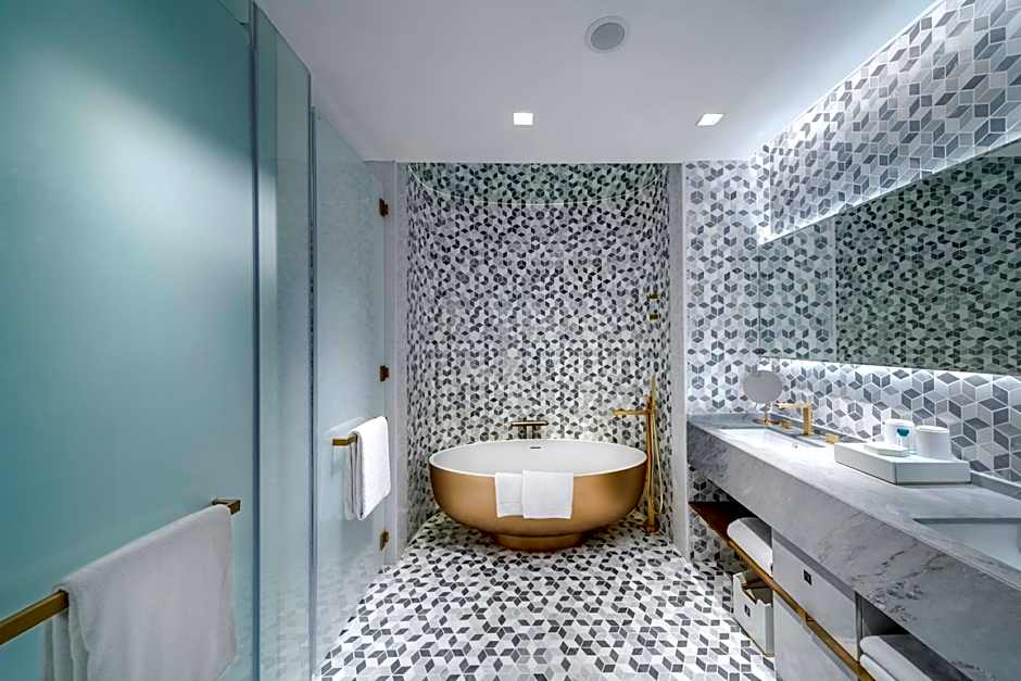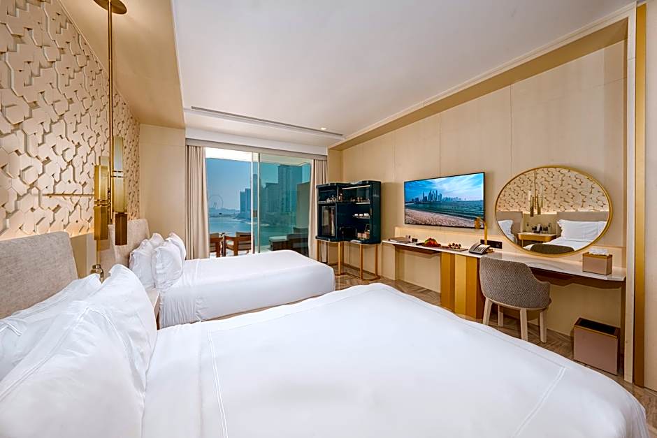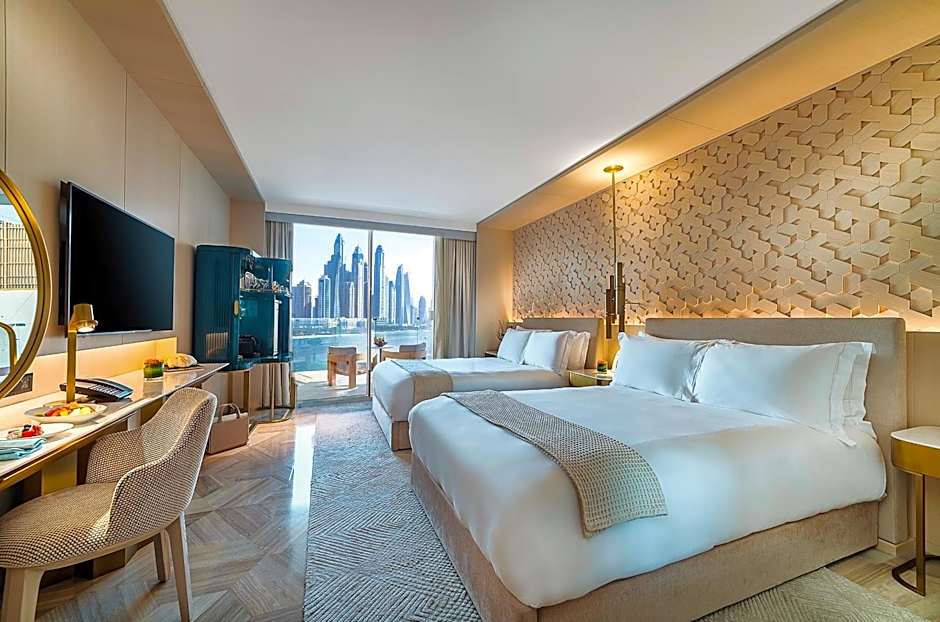 Featuring a private balcony with seating, this air conditioned room offers two queen beds. It has a 55 inch smart TV and FIVE in-room smart device to control lights. It also includes: - Complimentary WiFi - Air-conditioning with independent temperature, control - Italian and Greek marbled bathroom - Bathroom amenities - Separate bath and shower - Complimentary turn down service - Private in-room mini-bar with cocktail making facilities - Espresso coffee machine, tea and coffee making facilities Please note that this room cannot accommodate any extra bed.