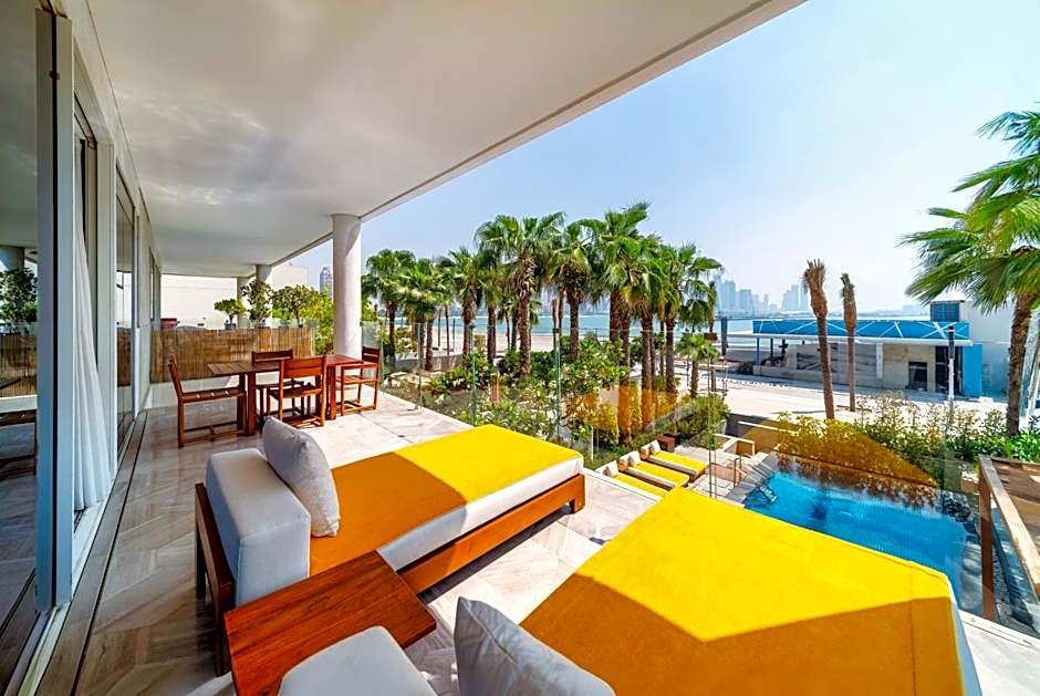 Set on the ground floor with views of the Marina skyline from the 316 sqm balcony, this apartment features a private pool, a garden, and direct access to the private beach. Guests can enjoy a personal butler service and convenient access to the FIVE Palm Jumeirah's culinary hot spots, social pool, and kids' club.