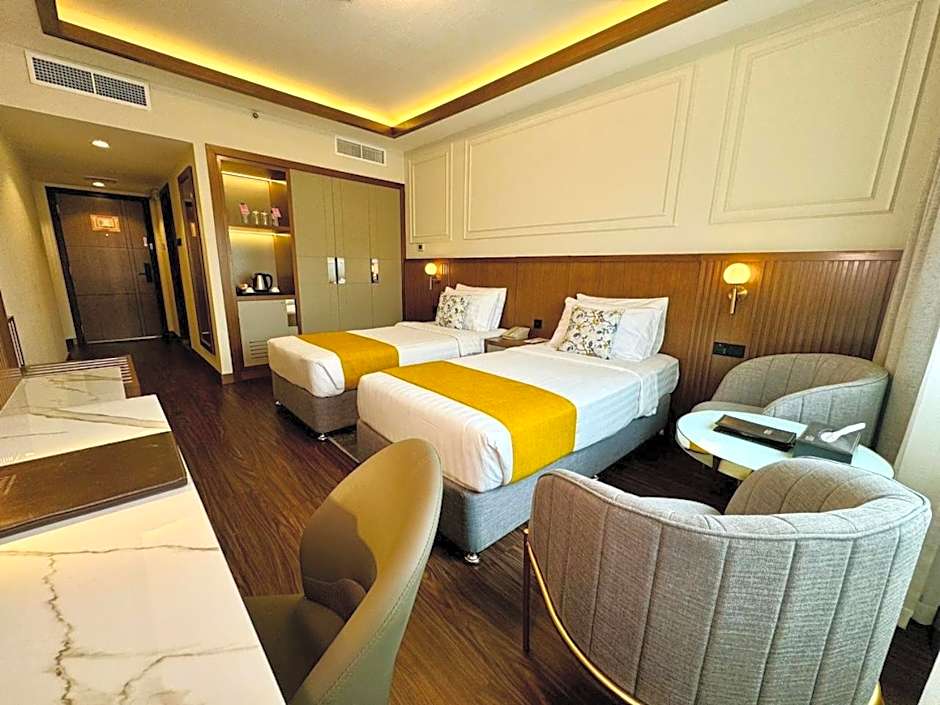 The Fortune Plaza Hotel at Dubai Airport offers a variety of room types such as Deluxe, Superior, and Standard rooms. These rooms can accommodate 2 adults and 1 child with bed options including Queen-size, Twin beds, and Double beds. Smoking is not allowed in any of the rooms. Sizes range from 248 sqft for Deluxe rooms.