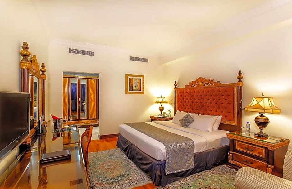 Enjoy a lavish 100 sq.yards one bedroom suite with separate large dining and living area. The suite is tastefully furnished with Arabic decor giving an experience of original Arabian hospitality.This spectacular suite offers privacy, luxury and exquisitely designed accommodations with spacious bedroom, large bathroom with Jacuzzi, walk-in closet, 42 inches LCD television with satellite channels. Let that be a business meeting or a quick family get-together to take care of all your needs.