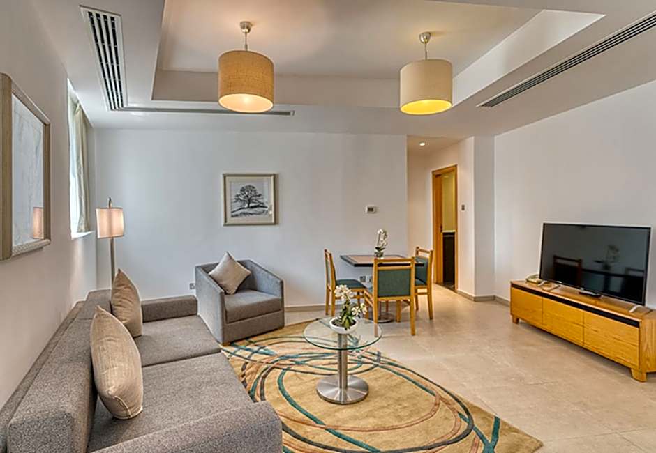 The location is excellent. It's very close to shops, restaurants, and the metro. The property also features a spa, gym, and swimming pool. The staff were very friendly. Many thanks for their help, especially to George, Mohammed, John, and others (I don't remember their names). The staff responded immediately to every request. Breakfast was excellent, and the restaurant staff were professional. We had a lovely time here.