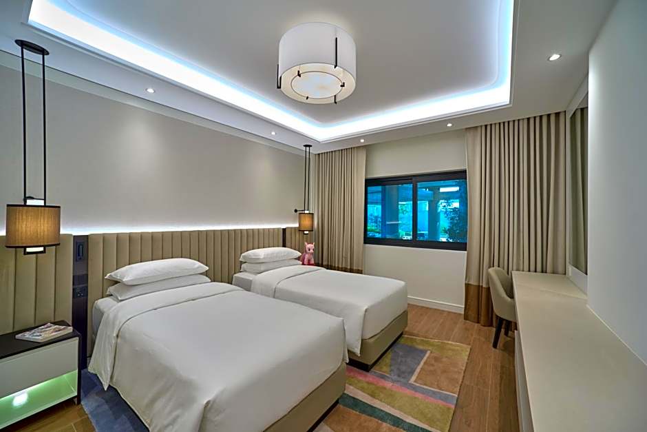 Guests at the Grand Hyatt Residence can enjoy a variety of leisure activities during their stay. They can relax at the spa offering wellness packages, sauna, steam room, and a spa lounge. For those interested in fitness, there's a well-equipped fitness center and indoor and outdoor swimming pools. The outdoor pool also has beach umbrellas and loungers for a comfortable sunbathing experience. In the evening, guests can unwind with live music performances and drinks at the bar.