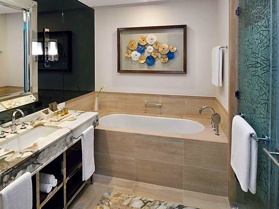 At the Grand Plaza Mövenpick Media City, the fun never stops! Savor delicious breakfasts to fuel your adventures, then dive into a refreshing soak in the pool or savor the sun on the sun deck. Enjoy a night of laughter with loved ones over kid-friendly buffets or kick back at the bar with a drink of your choice. There's something for everyone, whether you're interested in skiing, horseback riding, or simply enjoying a hot tub session on your private balcony with a stunning landmark view. And for tech-savvy travelers, there's Wi-Fi and streaming services available for ultimate relaxation.