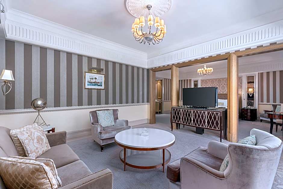 The hotel offers a variety of rooms, including King Suites, Deluxe Double Rooms with Two Double Beds, Grand Deluxe Double Rooms with Two Double Beds, Deluxe King Rooms, Grand Suites, Empire Suites, Ambassador King Suites, Grand Deluxe King Rooms, Duchess Suites, and Royal Suites. The rooms can accommodate 2 to 5 adults and 1 to 4 children. Smoking is not allowed in any of the rooms. Bed sizes range from Double to King, and room sizes vary from 592 sqft to 3853 sqft.