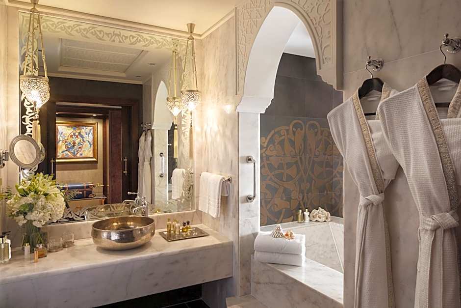 The room features views over Palm Dubai. The room features a private balcony, two double-sized beds, a marble bathroom and a welcome basket of seasonal fruits. In addition it gives you a complimentary internet access, complimentary access to the Club Lounge. Offering all day tea, coffee and soft drinks. Additional amenities are Coffee and tea making facilities, welcome basket of seasonal fruits, complimentary newspaper and "Pressreader" application, in-room security safe, hairdryer, mini-bar, ironing facilities, baby cots and baby amenities are also available.