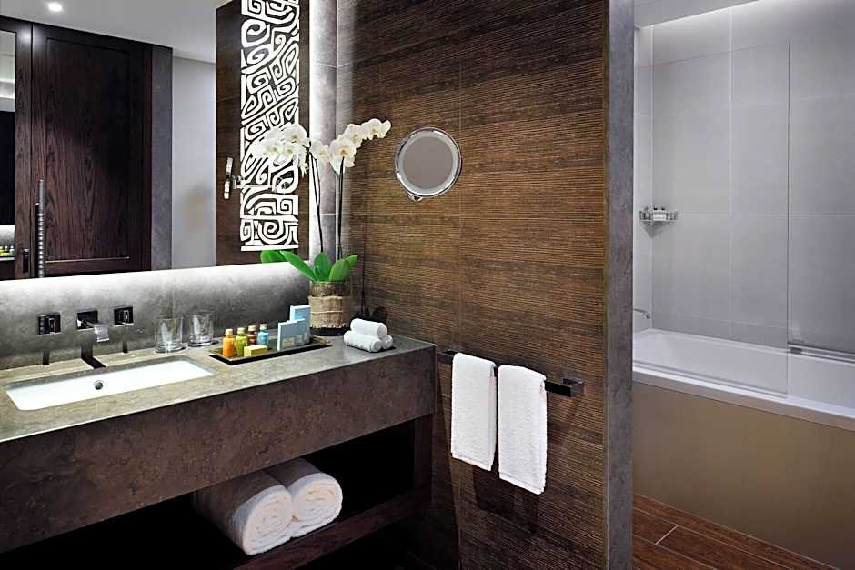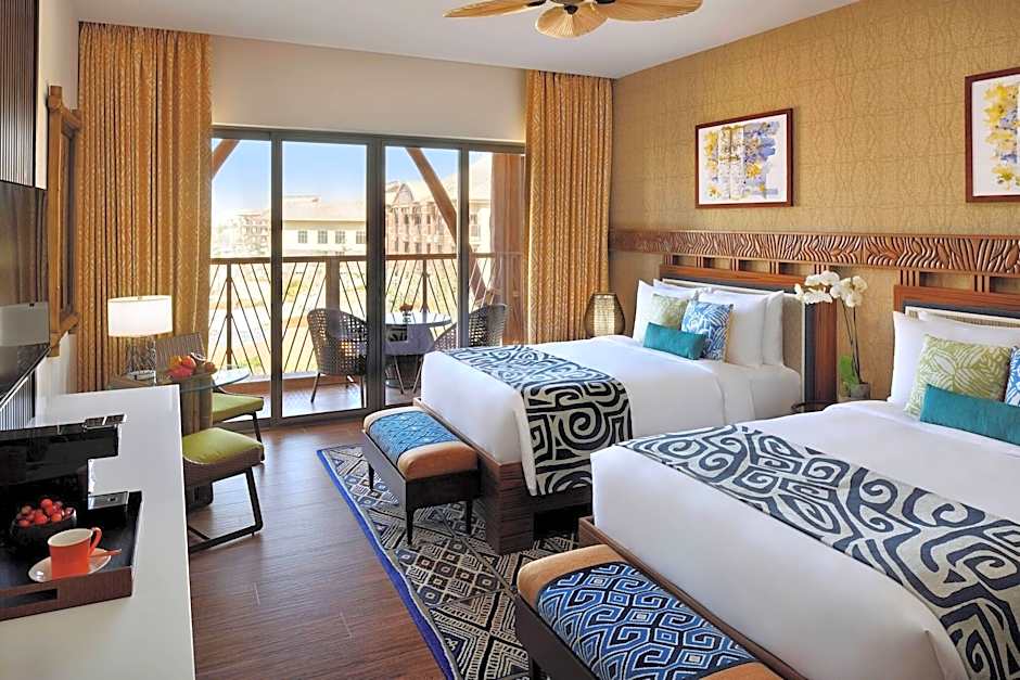 Featuring a spacious balcony with views over tranquil river and the theme parks, the double bed rooms offers two double beds with plush bedding, a mini-bar, coffee machine, 24-hour room service and a work desk. The marble bathroom offers a bathtub, bathrobe, slippers, a hairdryer and complimentary toiletries.