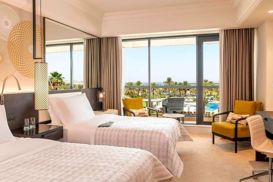 Le Royal Meridien Beach Resort & Spa Dubai offers a variety of rooms including Super Deluxe twin and double rooms with sea or city views, Family 2-Bedroom Suites, and a range of suites including the Super Deluxe Suite and Royal Club Suite. Occupancy ranges from 2 adults to 2 adults and 1 child. All rooms are non-smoking and feature twin beds or a king-size bed, with room sizes ranging from 366 to 1184 sqft.