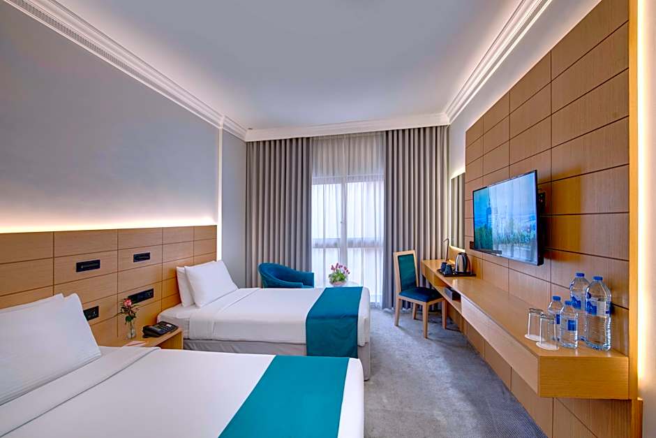 Lotus Grand Hotel offers Deluxe Double or Twin Rooms accommodating 2 adults and 1 child with a bed configuration of 1 Double bed and 2 Twin beds in a non-smoking environment. The Executive Double Rooms feature a TwinDouble room type with a capacity of 2 adults and 1 child, consisting of 2 Twin beds and 1 Double bed. These rooms do not permit smoking and provide a room size of 183 sqft and 215 sqft respectively.