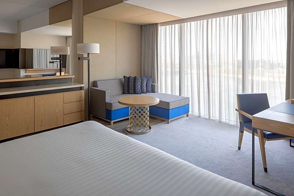 This spacious suite is consisted of of 1 bedroom, a seating area and 1 bathroom with a walk-in shower and a bath. The air-conditioned suite offers a flat-screen TV with streaming services, soundproof walls, a tea and coffee maker, executive lounge access as well as city views. The unit offers 1 bed.