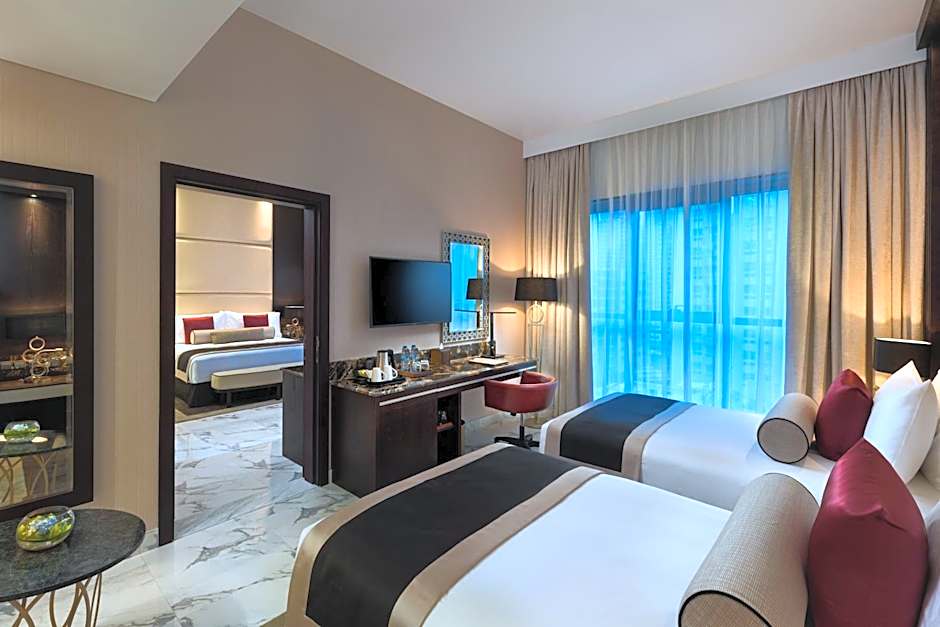 As you retreat to your room, you'll find a relaxing oasis equipped with soundproof walls, air conditioning, and extra-long beds to cradle you into a peaceful slumber. Many rooms boast balconies where you can soak in stunning views of Dubai Marina, along with lavish touches like a luxurious bathtub and free toiletries. For those looking to chill out at the beach, complimentary beach umbrellas and loungers await you. Millennium Place Dubai Marina is your ticket to unforgettable memories amidst the breathtaking allure of Dubai!
