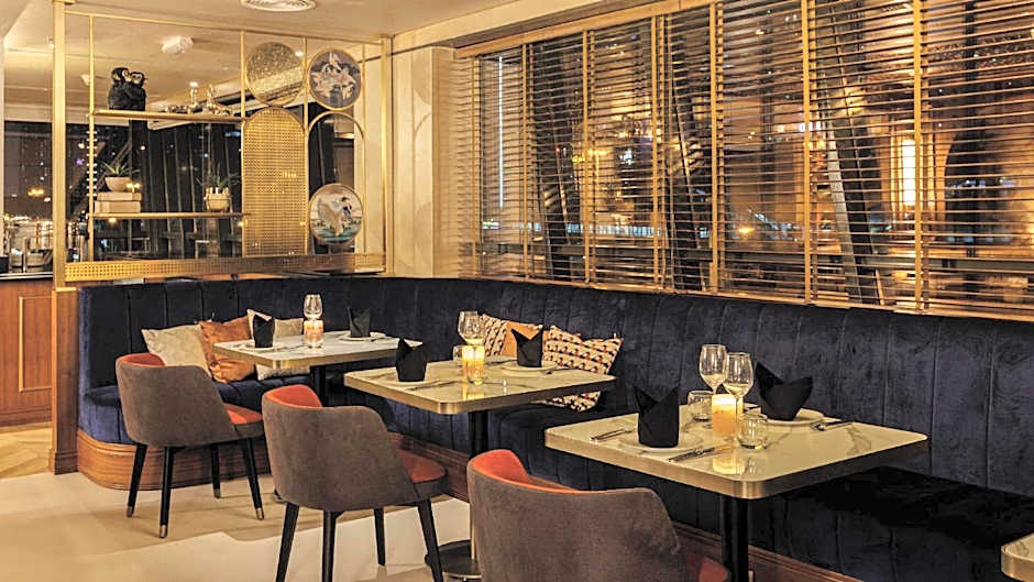 The hotel offers two on-site restaurants. The first is MasterChef, the TV Experience, which provides a family-friendly, modern, and romantic ambiance with international cuisine. The second restaurant is IKIGAI, offering a modern atmosphere with Japanese cuisine.