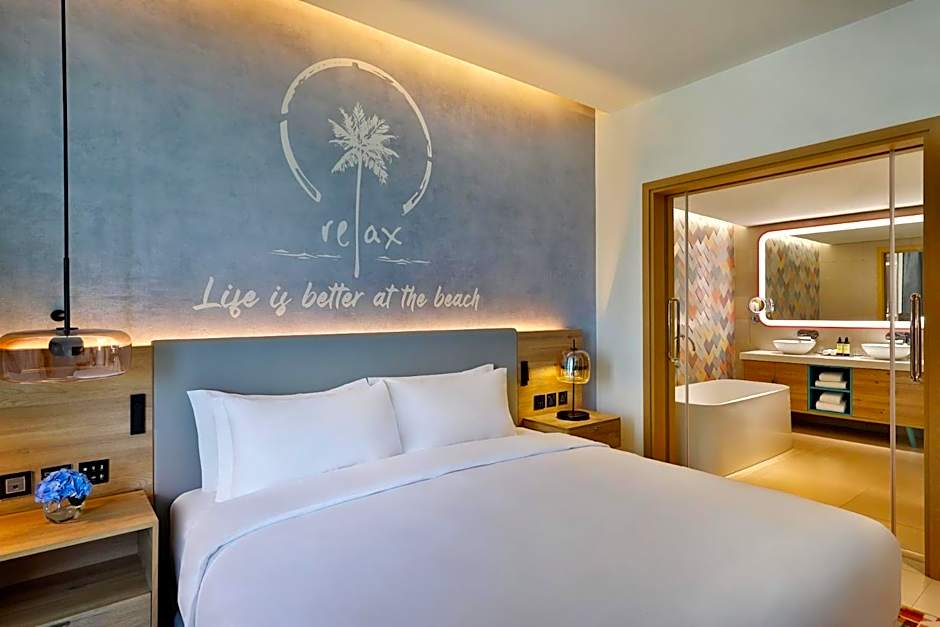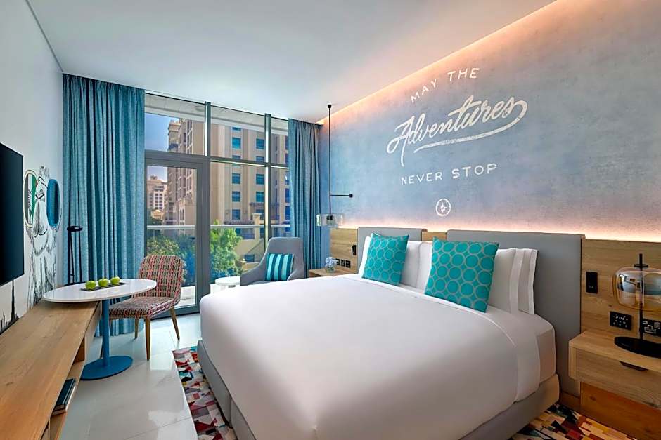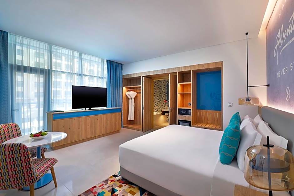För den som vill sola med stil är takpoolen ett måste! Det är en oas endast för vuxna där du kan njuta av cocktails samtidigt som du tar in den hisnande utsikten över havet och stadssiluetten. Om du känner dig äventyrlig kan du sedan få adrenalinet att pumpa i badlandet på området — glöm bara inte badkläderna! Oavsett om du flyter i poolen, ligger och slappar under en parasoll eller utforskar Dubais livliga omgivningar, erbjuder denna resort den perfekta blandningen av avkoppling och spänning som gör semestern både livlig och minnesvärd.