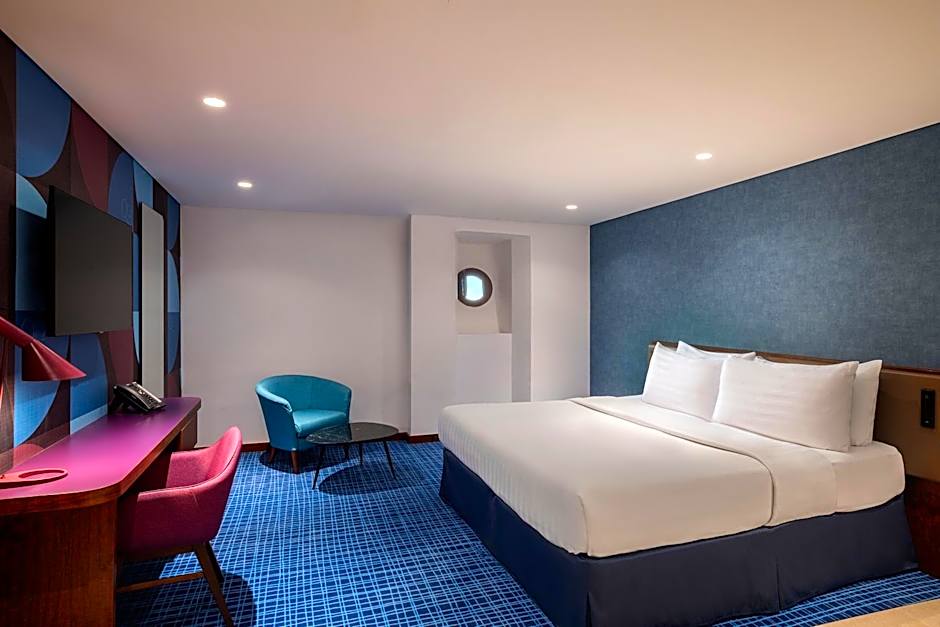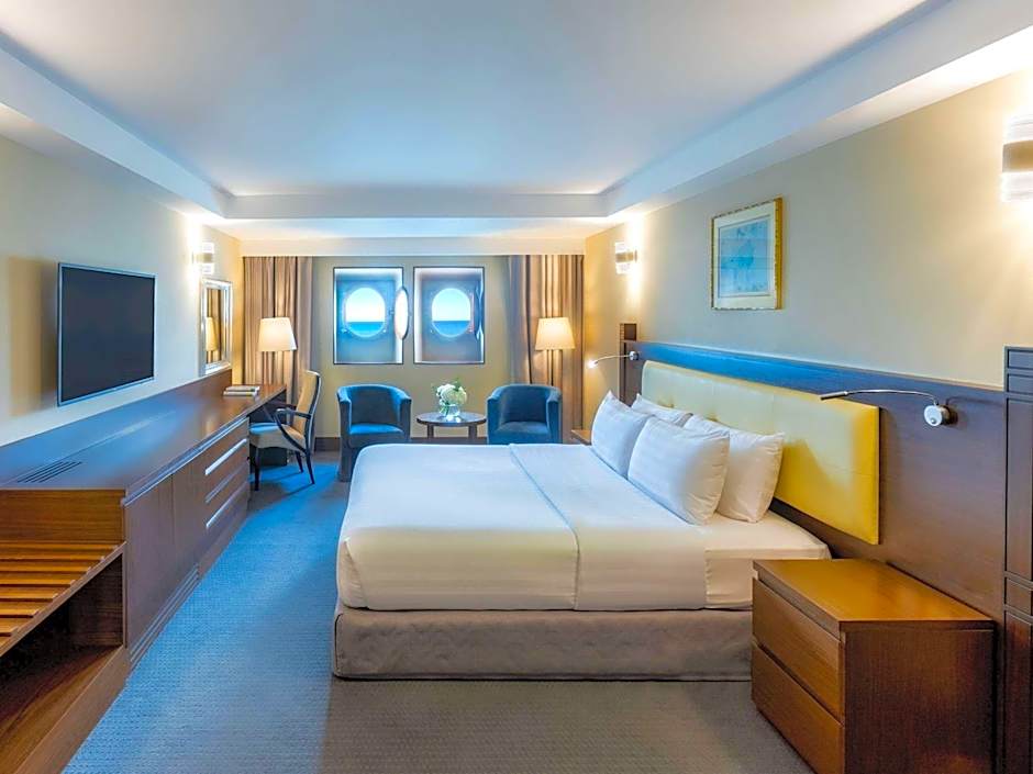 The hotel offers a variety of room types including Deluxe Rooms with either two single beds or one king bed, Superior Rooms with either city or sea view, Captain's Rooms with one king bed, and Suites with separate living room areas. The rooms range in size from 183 sqft to 893 sqft and can accommodate 2 to 3 adults with 1 to 2 children. Smoking is not allowed in any of the rooms, and bed sizes vary from twin beds to queen-size beds.