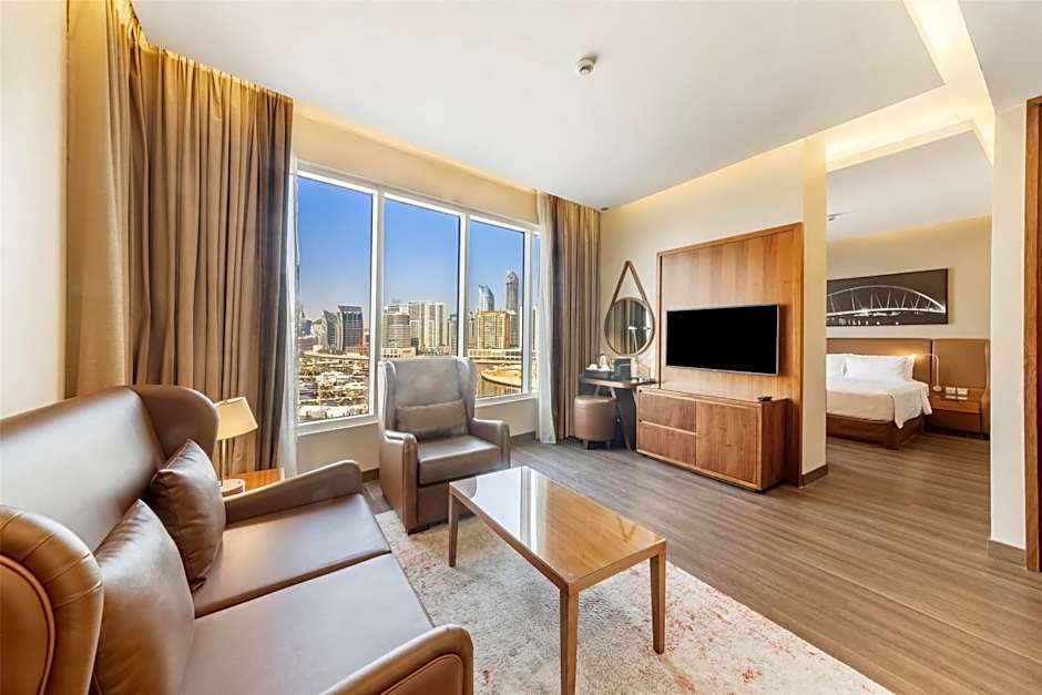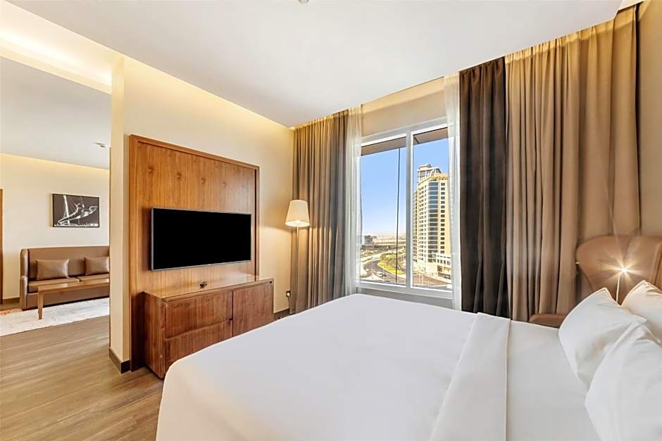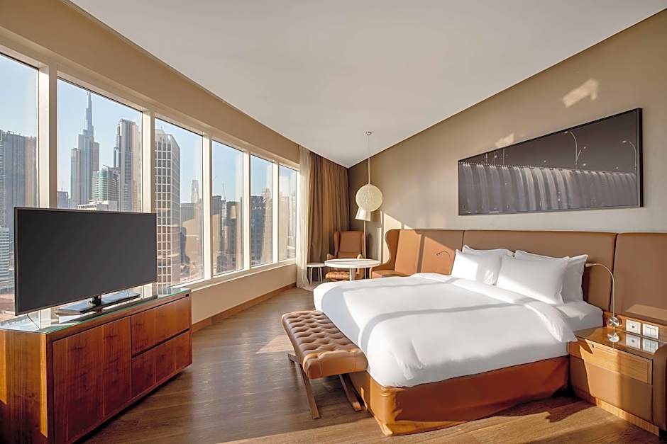 Experience effortless luxury in our spacious Suites. Designed to offer the ultimate Dubai experience, Suites include a living room and dining area with spectacular views. For more space, a connecting room can be booked at a surcharge. Make the most of Business Lounge access to enjoy a more exclusive and private setting, where complimentary breakfast is included along with a wide selection of drinks and delicious snacks. This double room features, two flat-screen televisions and free WiFi, so everyone can relax with their preferred entertainment, bathrobe, soundproofing and air conditioning. Complementary access to the Executive Club Lounge: