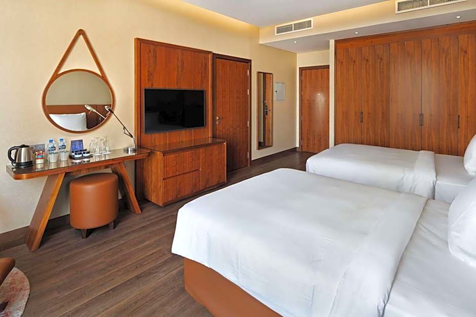 Plan a memorable family vacation in Dubai—with plenty of space and modern amenities to make your stay as hassle-free and relaxing as possible. Family Suites include special kids’ amenities, a comfortable living room, and an optional connecting room. The room also includes free WiFi, so everyone can relax with their preferred entertainment. This room features a flat-screen TV, bathrobe, soundproofing and air conditioning. This room offers: Free High-Speed, Wireless Internet, Mini bar Coffee & tea provisions Complimentary access to fitness center and pool Safe box.