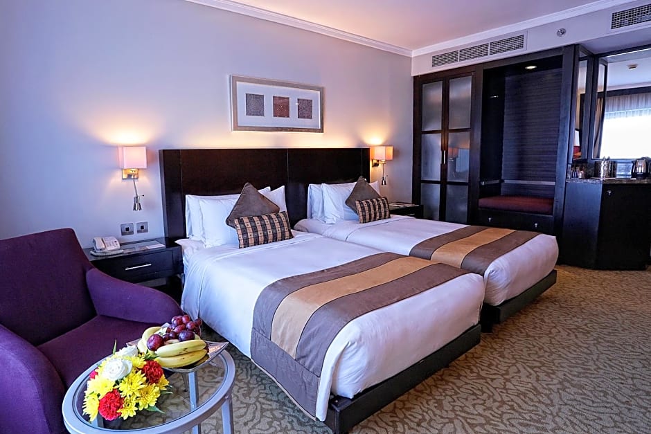 Willkommen im Ramada Plaza by Wyndham Dubai Deira, einem vier Sterne Juwel, das nur 13,4mi vom pulsierenden Stadtzentrum Dubais entfernt liegt! Machen Sie sich bereit, Ihre Abenteuer in den strahlenden VAE zu beginnen, ohne das Budget zu sprengen, denn die Preise beginnen bei nur $36. Bequem neben Abu Bakar Al Siddique gelegen, dient dieses Hotel als perfekter Ausgangspunkt für Reisende, die die Sehenswürdigkeiten und Klänge dieser lebhaften Stadt erkunden möchten, während sie den Komfort moderner Annehmlichkeiten genießen.