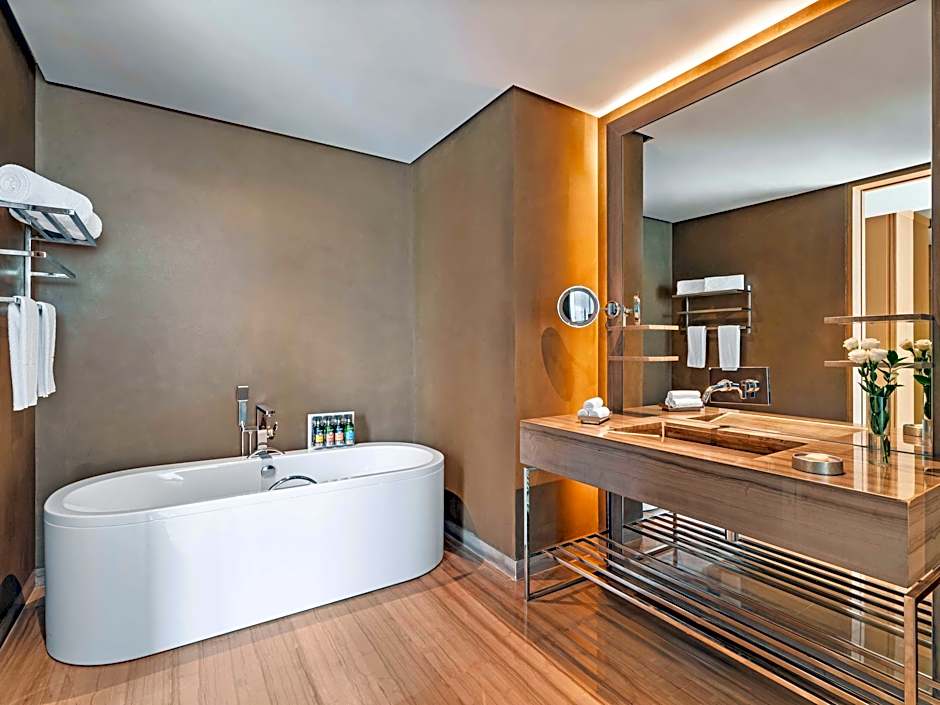 Featuring spectacular views of the Arabian Gulf and the Dubai Eye (The Ain), Premium Rooms are decorated in a rich, warm color palette with a simple yet elegant interior. Enjoy a good night’s rest on your choice of a double or twin beds while staying connected and entertained with a 48-inch LED flat panel TV. These guest rooms feature expanded doorways leading to the bedroom with panoramic views and an private bathroom with a bathtub, a standalone shower. Please note that in Rixos Premium Dubai, smoking in rooms are strictly prohibited.