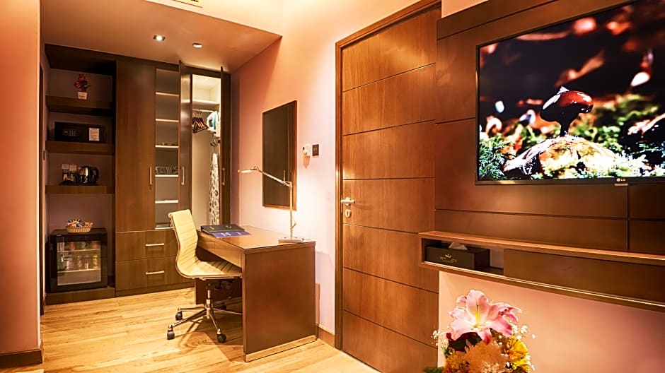 Deluxe King Room is 377 square feet and includes a king-size bed 150-183 width plus living room and extra beds on demand and is Wheelchair-accessible with a Disability-friendly bathroom.