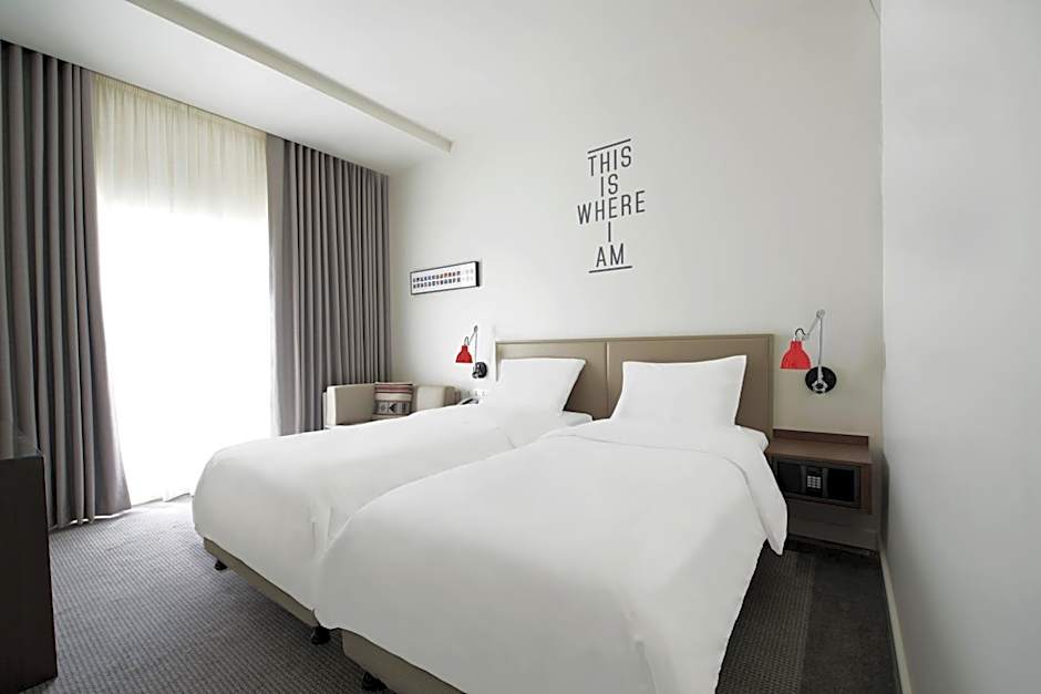 With stunning city views, this spacious 26 sqm Rover Room is equipped with free WiFi Internet access, universal power outlets, USB wall sockets, an 48' interactive flat-screen TV, a designer bed by Simmons, sofa bed suitable for a child, a modern bathroom including power rain showers and hairdryer, multiple electronic sockets and a large and ultra secure safe. Additionally, Rovers can enjoy complimentary water on arrival, coffee and tea-making facilities and a convenient mini fridge. This room is nonsmoking.