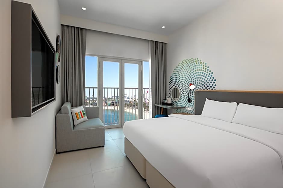 At Rove La Mer Beach, Jumeirah, guests can enjoy various leisure amenities. They can relax and soak up the sun on the beach, or take a dip in the outdoor swimming pool. For those looking for a more active experience, the hotel offers a water park and a fitness center. The outdoor pool, equipped with heating and salt water, is exclusively for adults, providing a tranquil environment for relaxation.