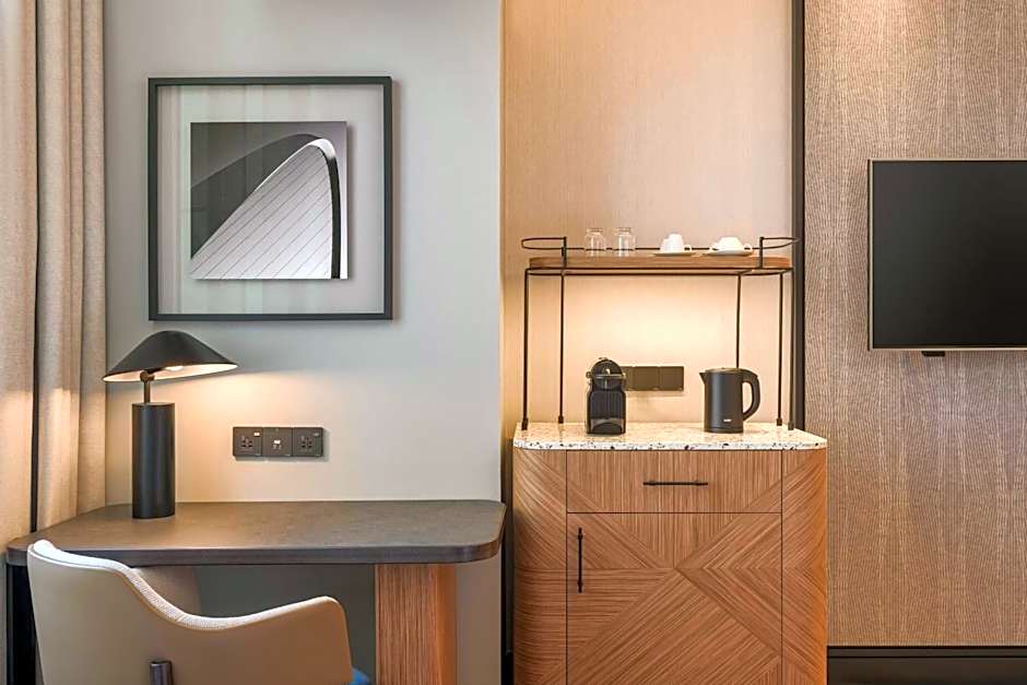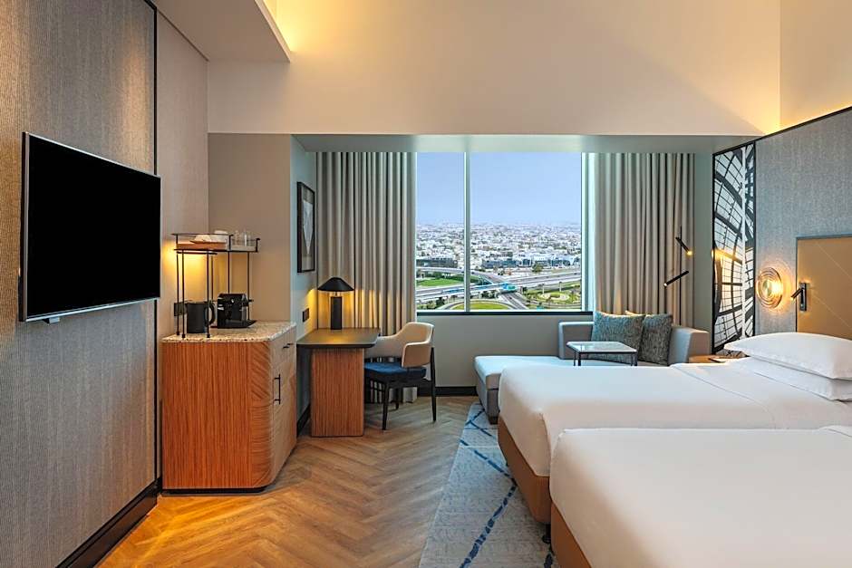 The 35sqm room offers views of Al Barsha or Dubai skyline views from higher floors, an LCD flat screen TV and complimentary high speed WiFi. The room also offers complimentary in-room coffee and tea making facilities, complimentary access to the Sheraton Fitness Center and outdoor swimming pools on the 24th floor rooftop, complimentary shuttle service daily to the Kite Beach, and complimentary valet parking.