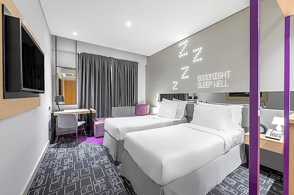 This twin room features complimentary high speed wired and WiFi internet access, a 43-inch Smart LED TV, complimentary tea and coffee tray and safe box.
