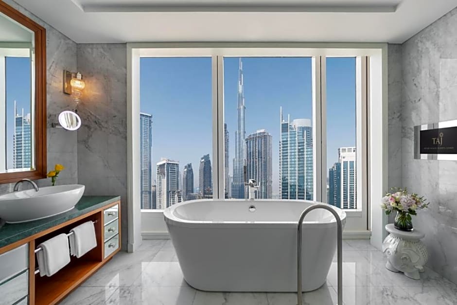 Taj Dubai is a 5-star hotel in Dubai, United Arab Emirates, located on Downtown Burj Khalifa Street. It lies about 8.4mi from the city center and has 4,464 reviews. Price starts from $157, inviting travelers to experience luxury at a friendly starting rate.