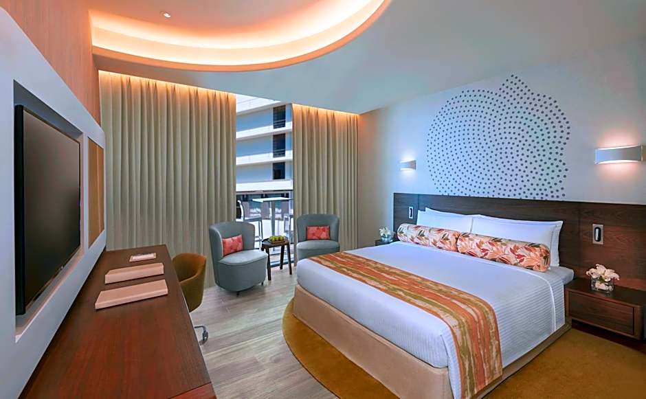 115 ft²/ 377 sq.ft. Floor to ceiling windows. King or Twin Beds, Palm View, Balcony, Free WiFi Internet,42" TV, mini bar, separate shower and bath tub, Access to Club Lounge.
