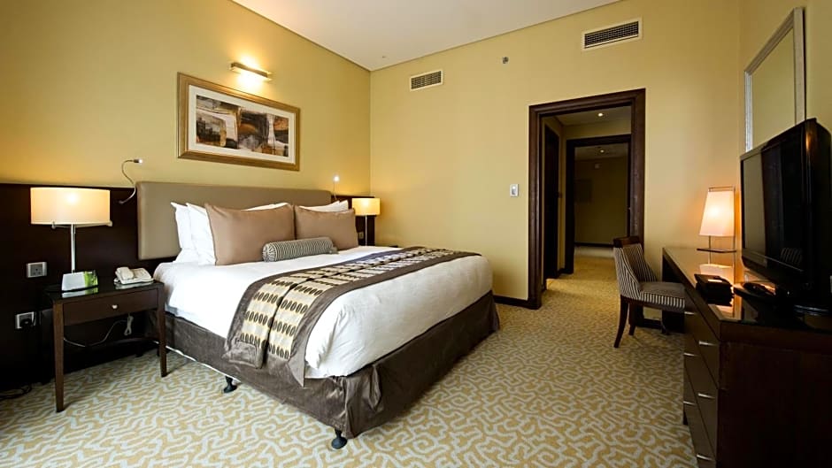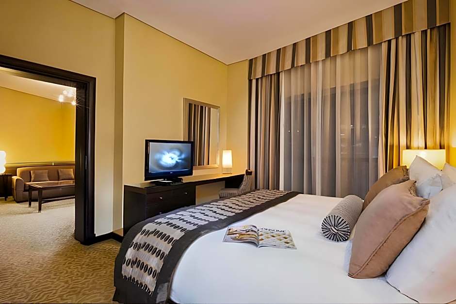 The hotel offers deluxe rooms with a double bed, accommodating 2 adults and 1 child, with a room size of 377 sqft and no smoking allowed. Superior rooms are available as suites, with a queen size bed, accommodating 2 adults and 1 child, and a room size of 872 sqft, also non-smoking. Additionally, the Executive Three-Bedroom suite features 2 double beds and 2 queen size beds, accommodating 6 adults and 1 child in a 2293 sqft non-smoking space.