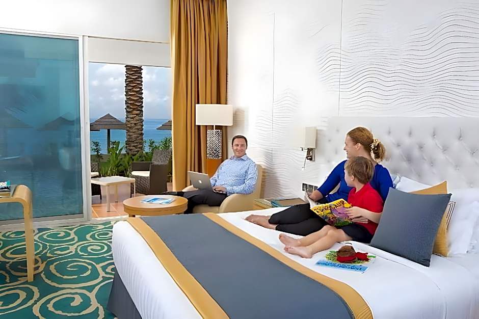 Three dining venues line the beachfront, offering a bite for every mood. Al Murajn Restaurant serves Middle Eastern and International cuisines in a family-friendly setting; Bab Al Bahr Restaurant pairs seafood with Modern, Romantic and Family-friendly vibes; Cafe Oceanic presents International fare in a sleek, modern atmosphere. On-site payment options include Mastercard, American Express, and Visa, with cash not accepted.
