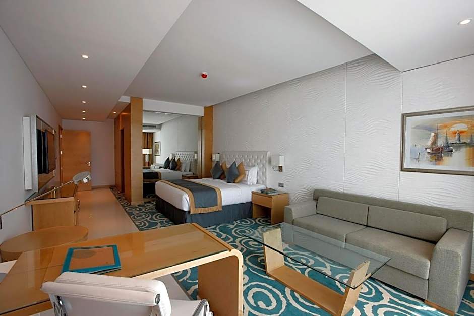 When it comes to dining, guests have a variety of options. The Al Murajn Restaurant offers Middle Eastern and international cuisine in a family-friendly ambiance. For those craving seafood, the Bab Al Bahr Restaurant provides a modern and romantic setting. Additionally, Cafe Oceanic welcomes guests with its modern ambiance and serves international cuisine.