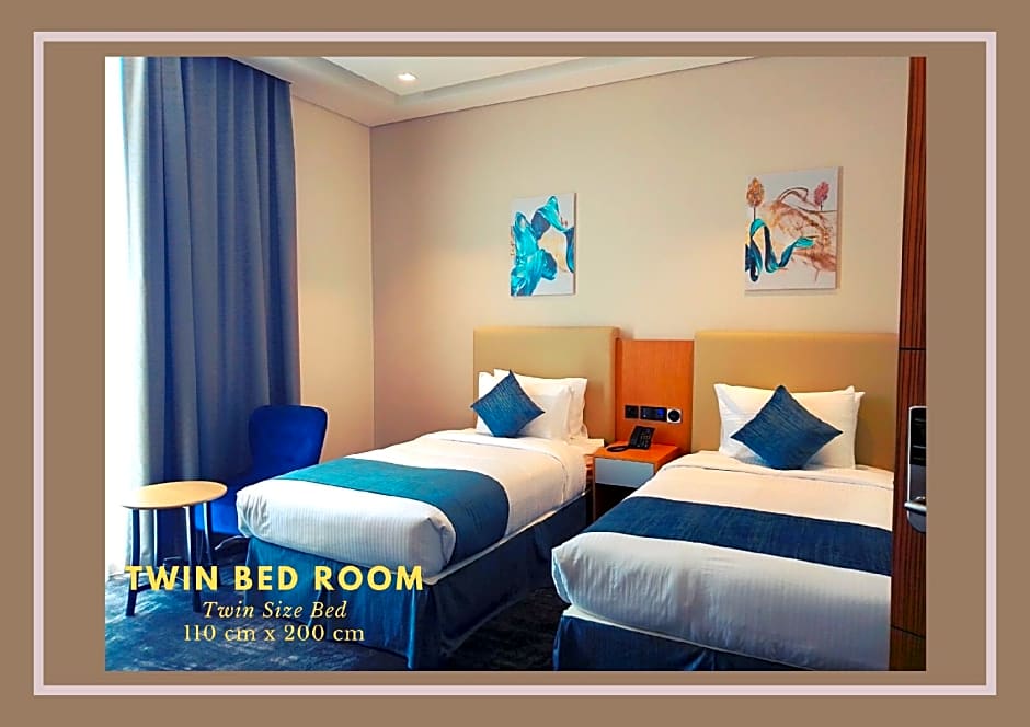 The hotel offers Deluxe Twin Rooms with a room size of 398 sqft, accommodating 2 adults with 2 twin beds and no smoking allowed. The hotel also provides rooms with various other bed configurations and sizes, catering to different occupancy needs.