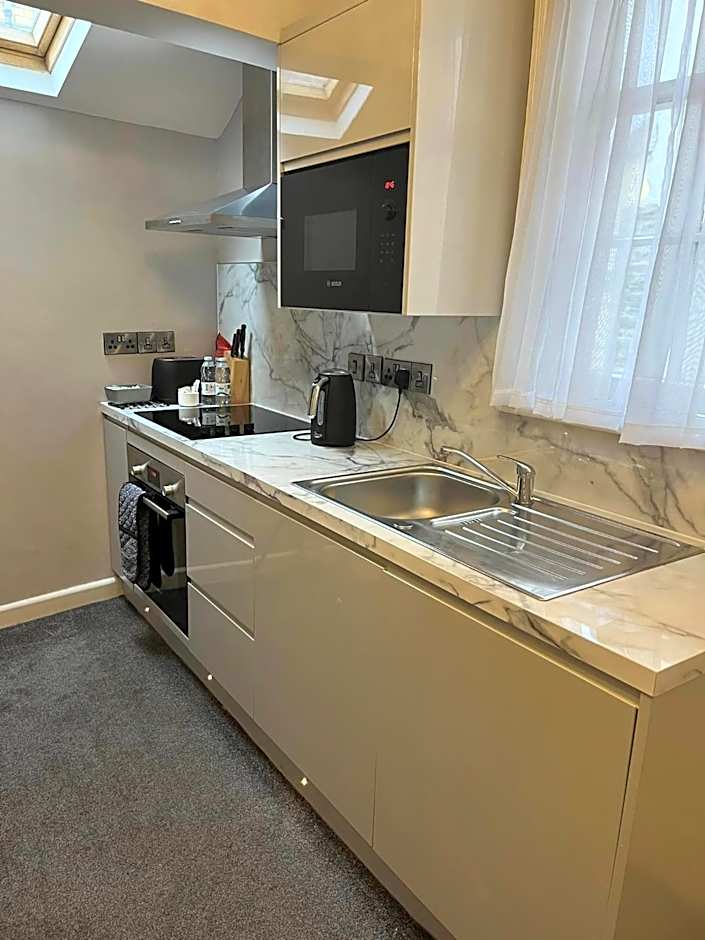 Spacious, refurbished room with modern decor.