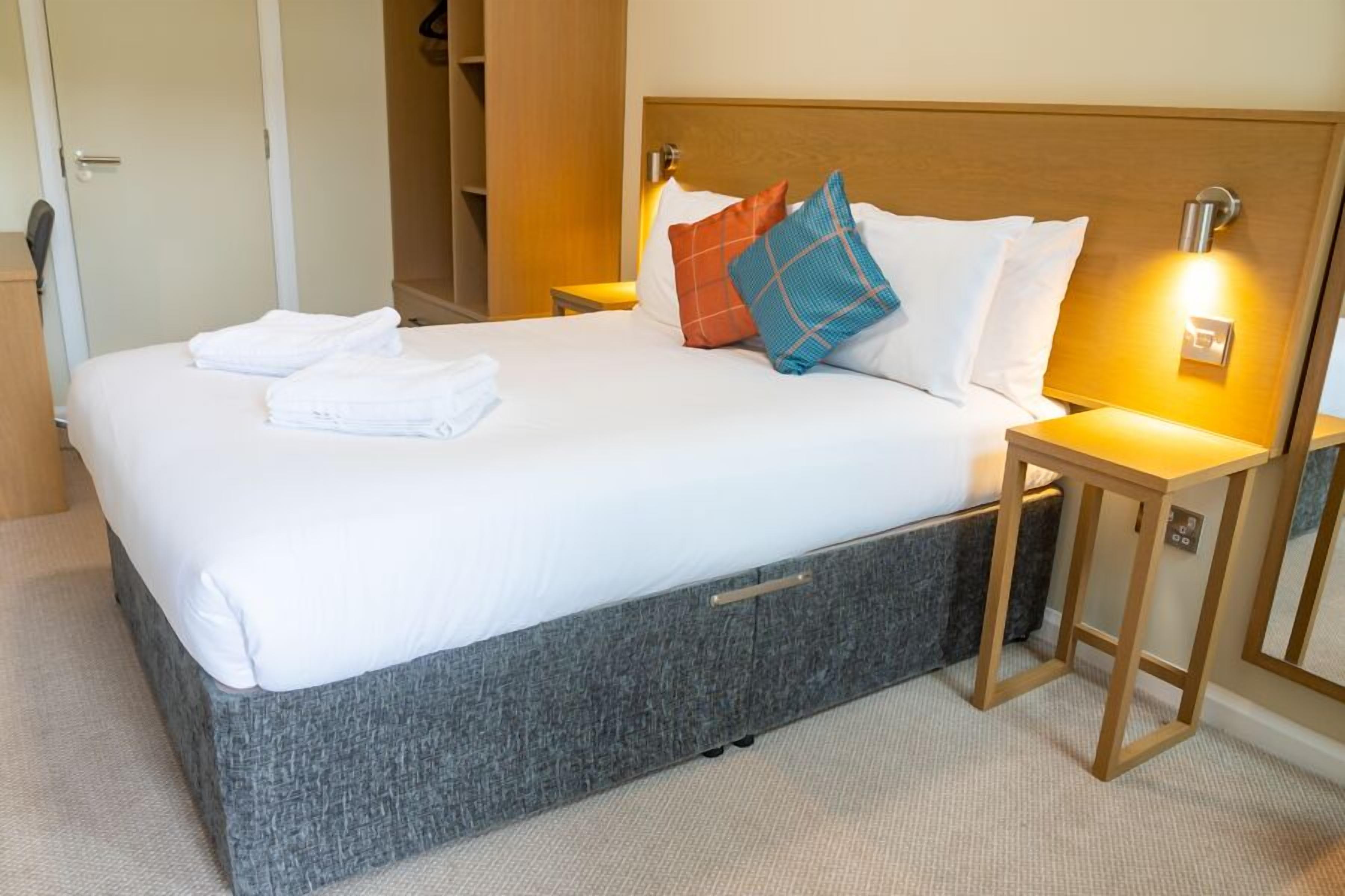 Plug socket on both sides of the bed was needed. Had to checkout early before breakfast and was offered a takeaway breakfast which was very poor. There was no bottle of water, no spoon to eat the yogurt, 2 tiny slices of bread with a jam and marmalade portion, no butter and no knife to spread the jam. Also the restaurant was closed as a function was on and had to go elsewhere for an evening meal.