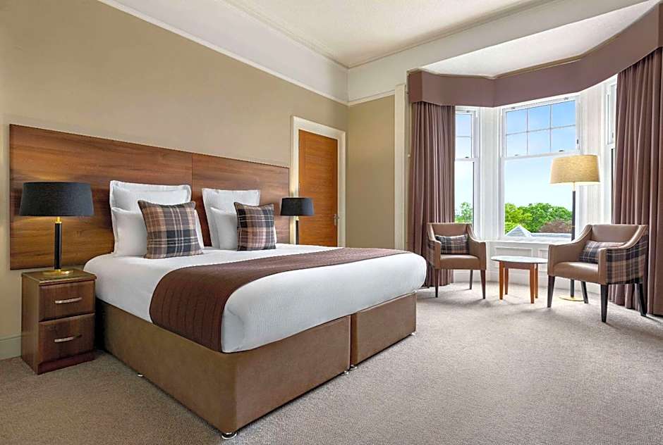 Guests can dine at the on-site restaurants, such as Monteaths, which offers a family-friendly and traditional ambiance serving British cuisine. The Whisky Bar and the Leisure Centre Cafe are also suitable for families and serve British cuisine.