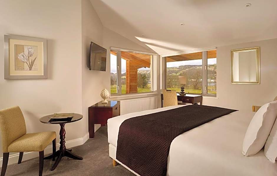 On-site dining features a British restaurant and a bar, perfect for winding down after a day on the greens. The setting centers around an on-site golf course, inviting guests to blend sport and relaxation. Leisure facilities include an indoor pool, steam room, sauna, and a spa tub to unwind after adventures.